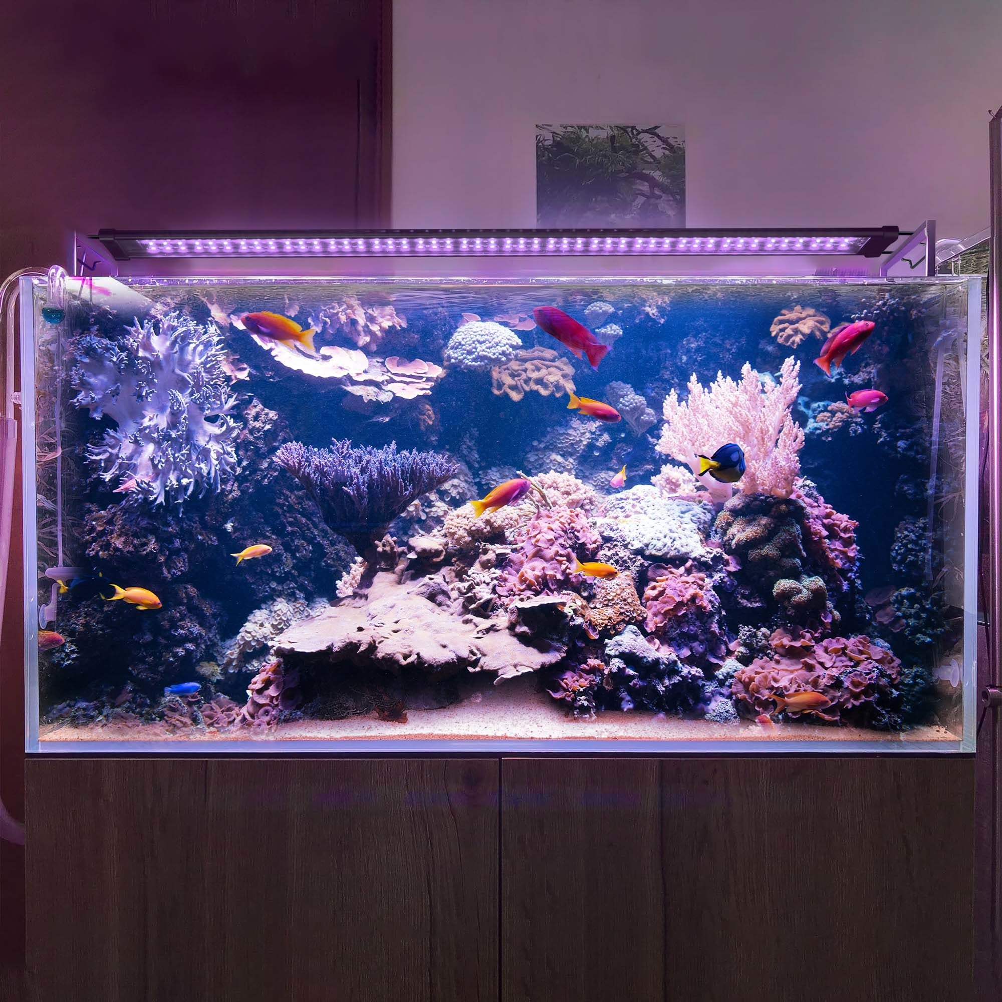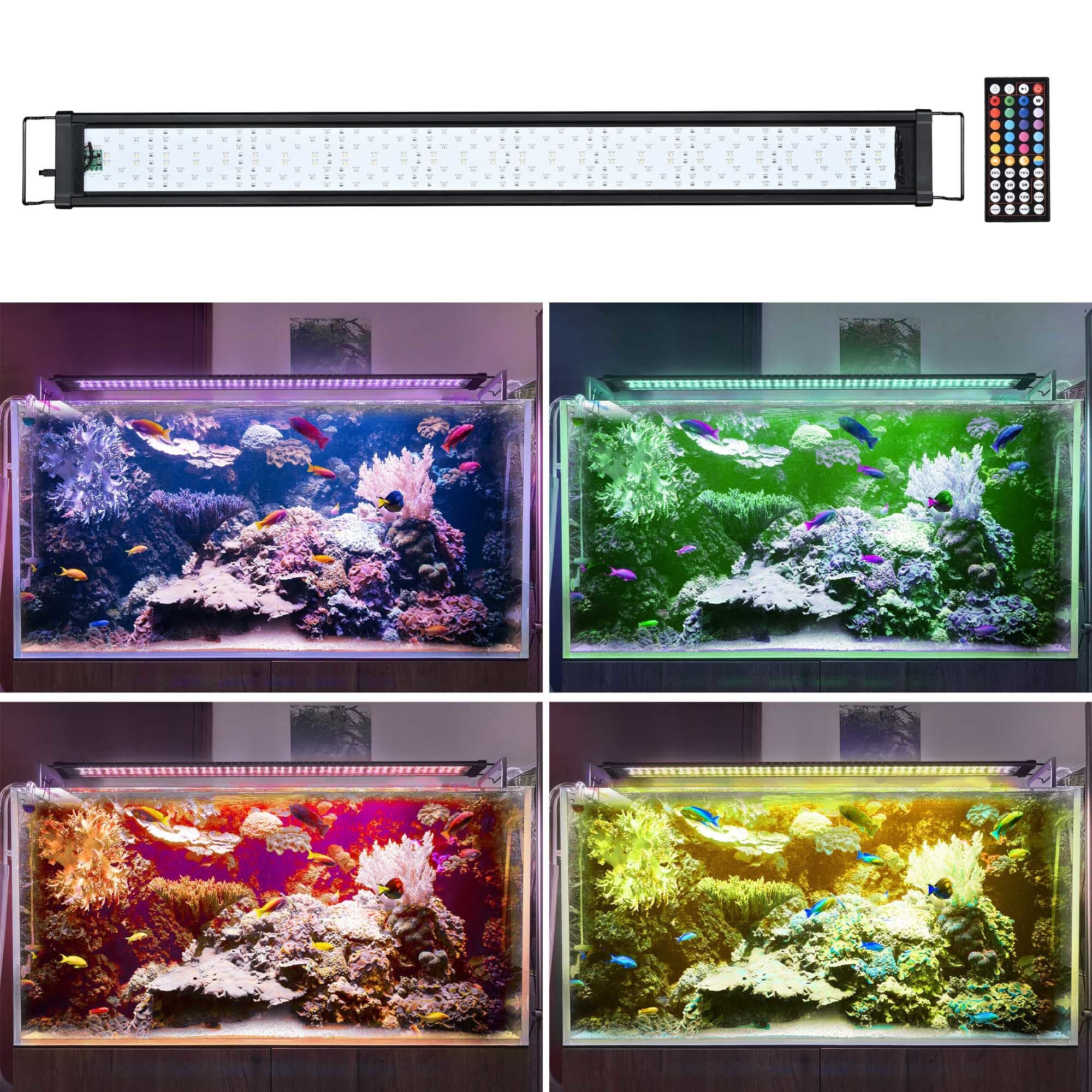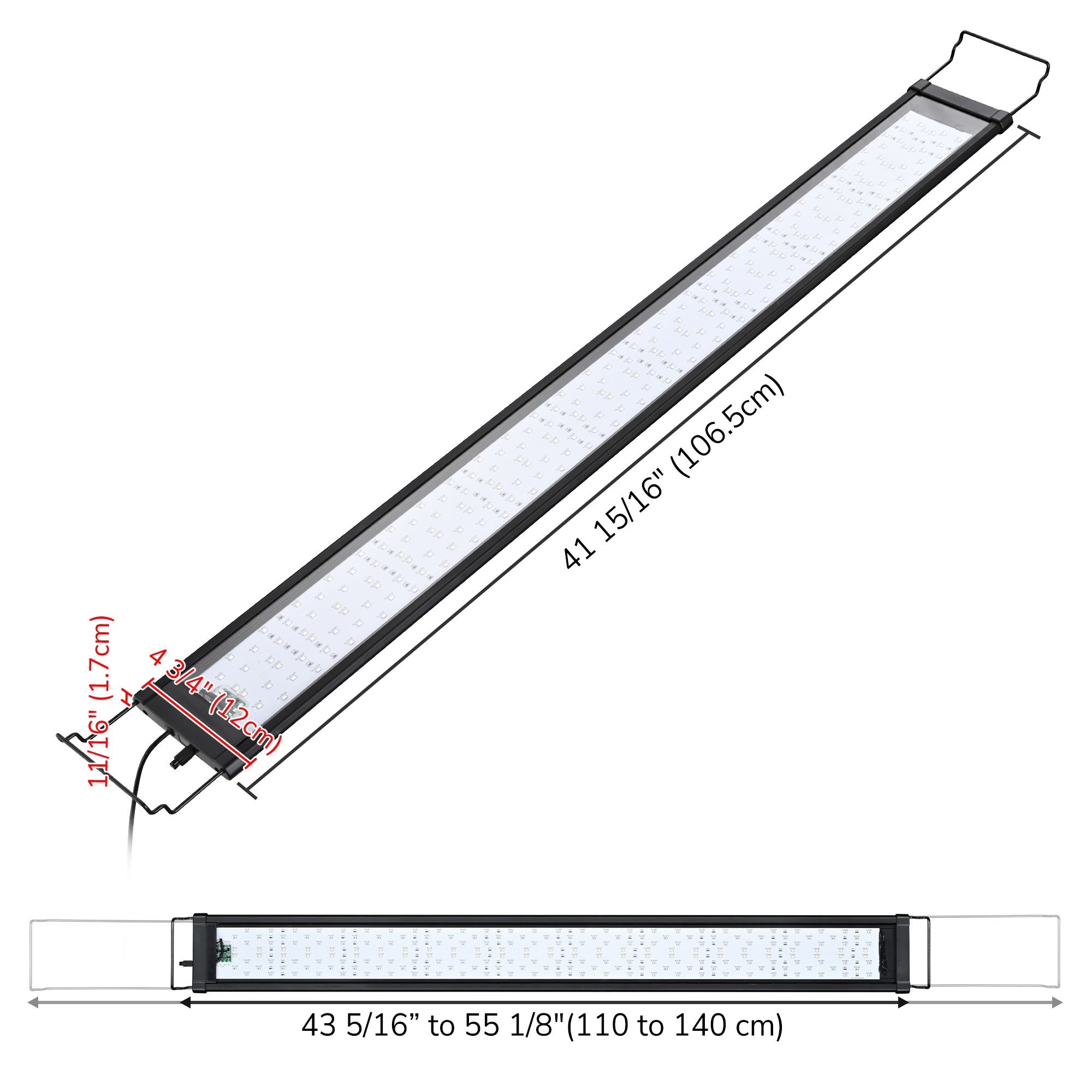 - Extendable Brackets for Great Flexibility - Aquarium light with mounting brackets which can be adjusted from 44" to 55" to fit different sizes of fish tank; flexible adjustment to easily install onto the fish tank