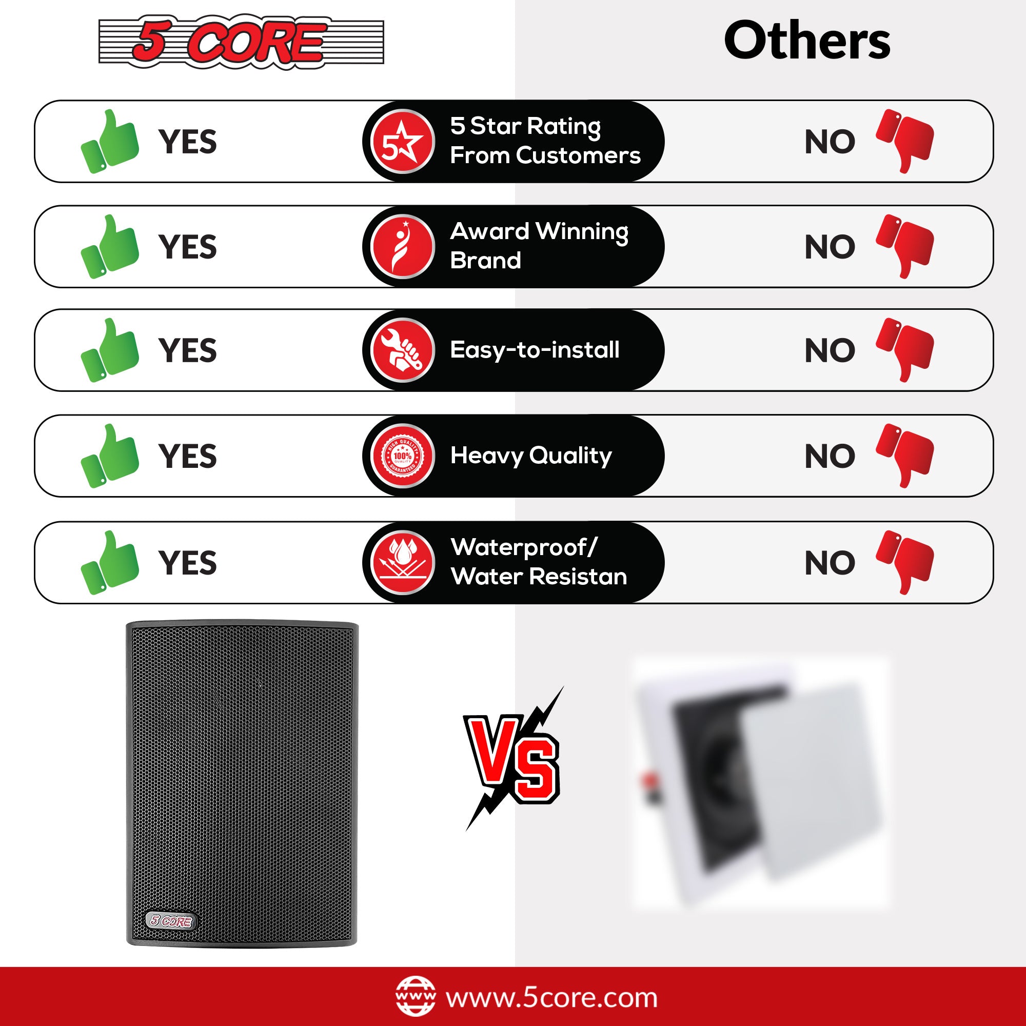Introducing the 5 Core Outdoor Wall Mount Speakers, designed to deliver high-quality audio performance in any outdoor setting. Whether you're hosting a backyard barbecue, lounging by the pool, or enhancing the ambiance of your patio, these speakers are your ideal audio solution.