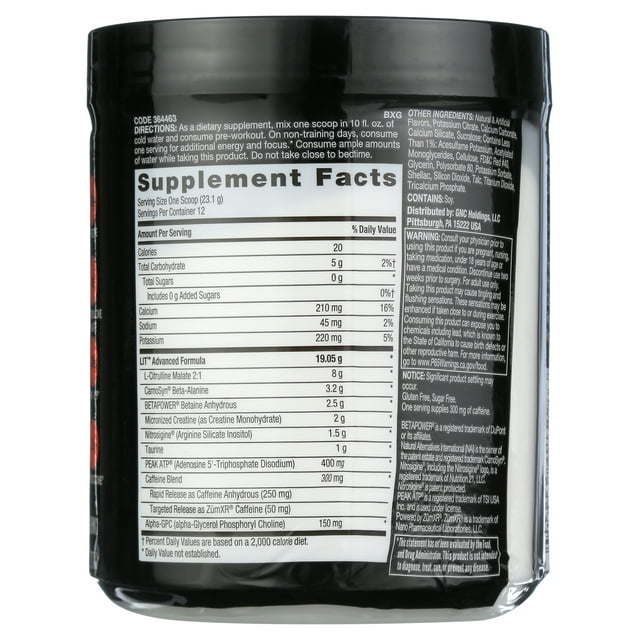 Get LIT™ AF and Ignite your most intense training sessions in the gym with the Advanced Formula that redefined the pre-workout category. LIT™ AF delivers a Clinical Strength formulation featuring Proven Ingredients in full Proven Doses to help you train with unmatched Energy, Intensity, Focus, Power and Pumps. Each Scoop delivers 300mg of Caffeine from 2-Phase Blend of rapid & targeted release caffeine blend plus Peak ATP™, CarnoSyn® Beta-Alanine, and Alpha-GPC for Energy, Stamina, & Mental focus. 8g of L-citrulline malate & Nitrosigine® to fuel massive pumps, and 2.5g BetaPower® & Creatine for power, strength, and performance.