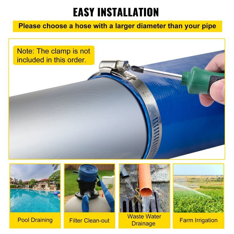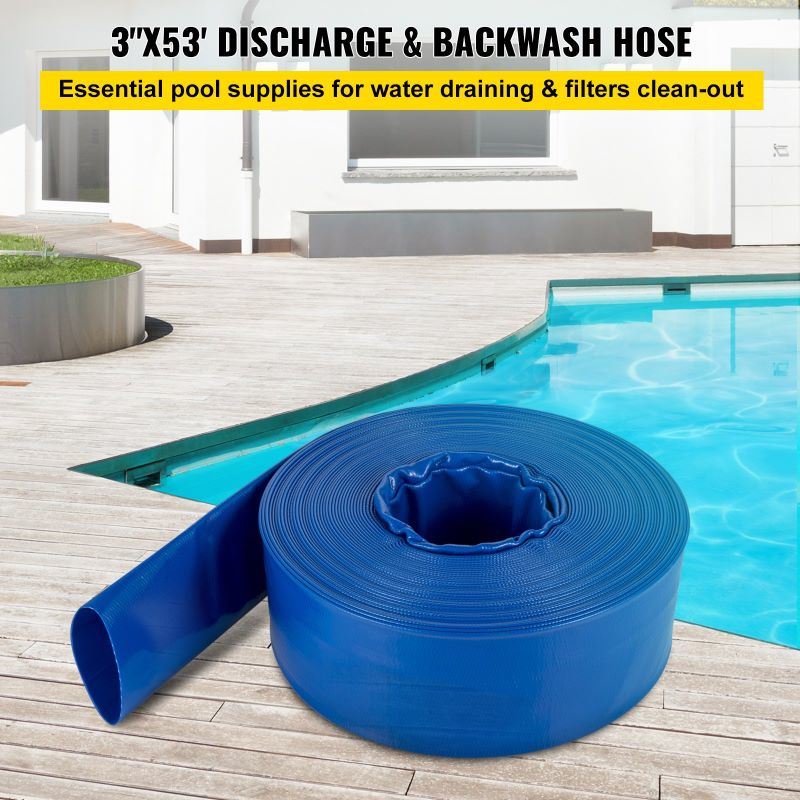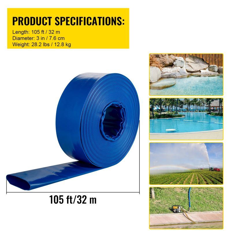 The heavy-duty backwash hose; due to its excellent quality and portability; is widely used for draining swimming pool; filter clean-out; fluid pumping; and draining for industry farm irrigation; quarry; mining; and construction applications; etc.