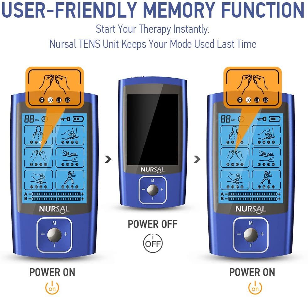 A/B DUAL CHANNELS TENS: You can set separate modes and intensities for channel A and channel B,and you can operate it with different intensity settings for each channel. Relax your body and have pain management anytime you feel the need with our NURSAL TENS electrotherapy pulse massager.