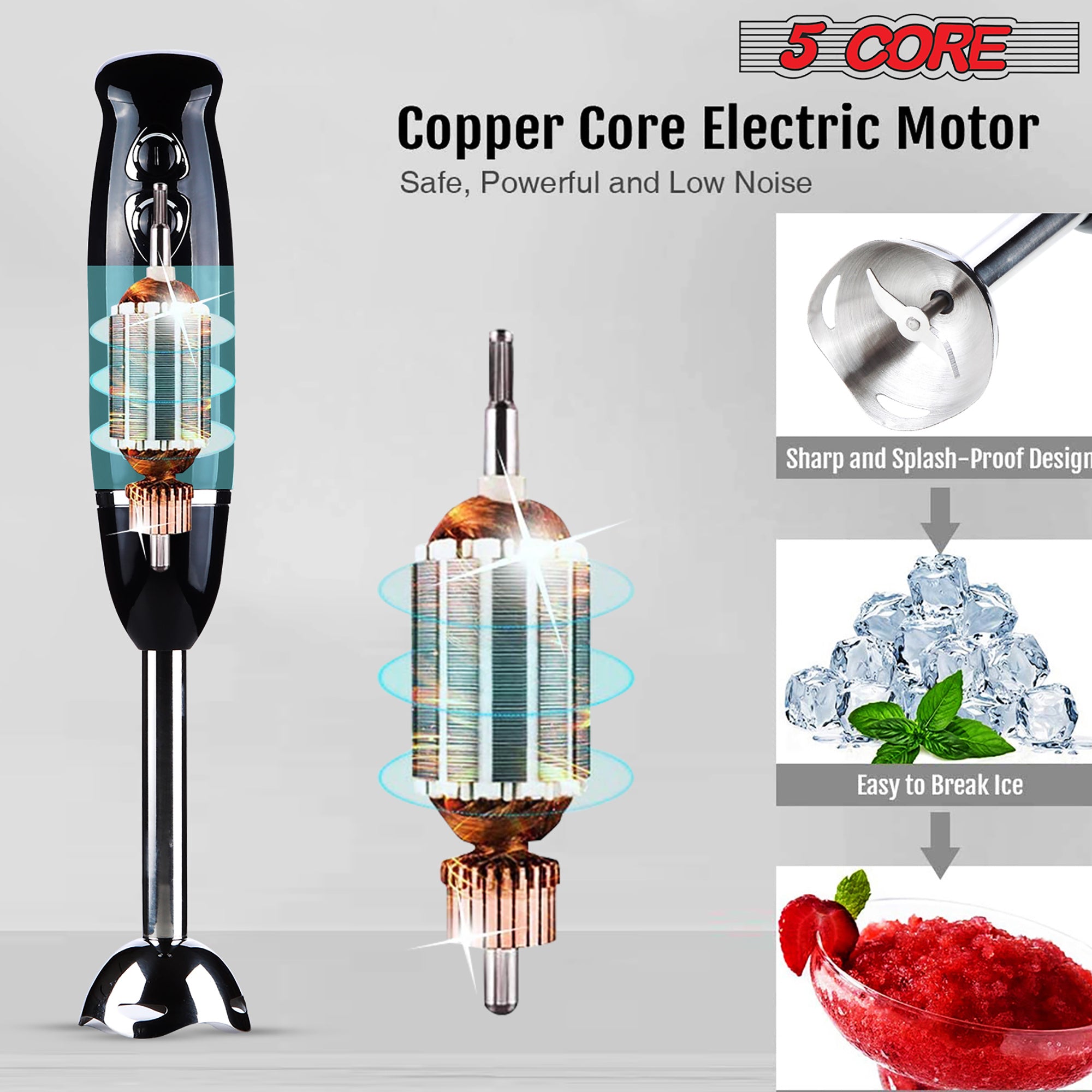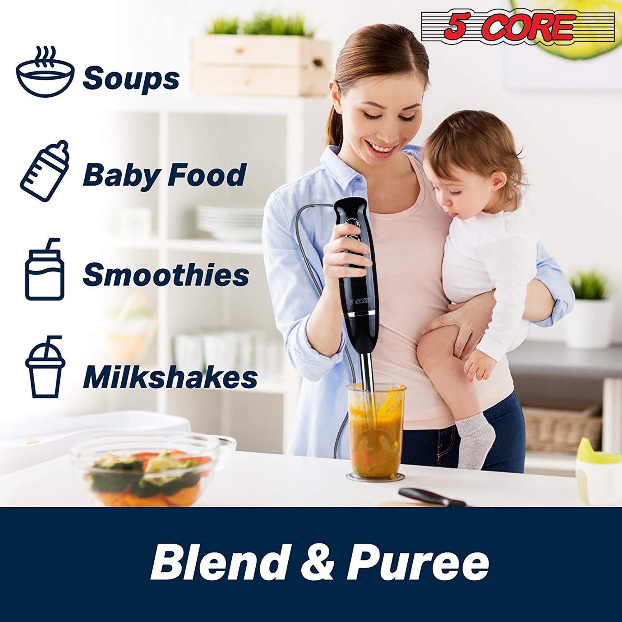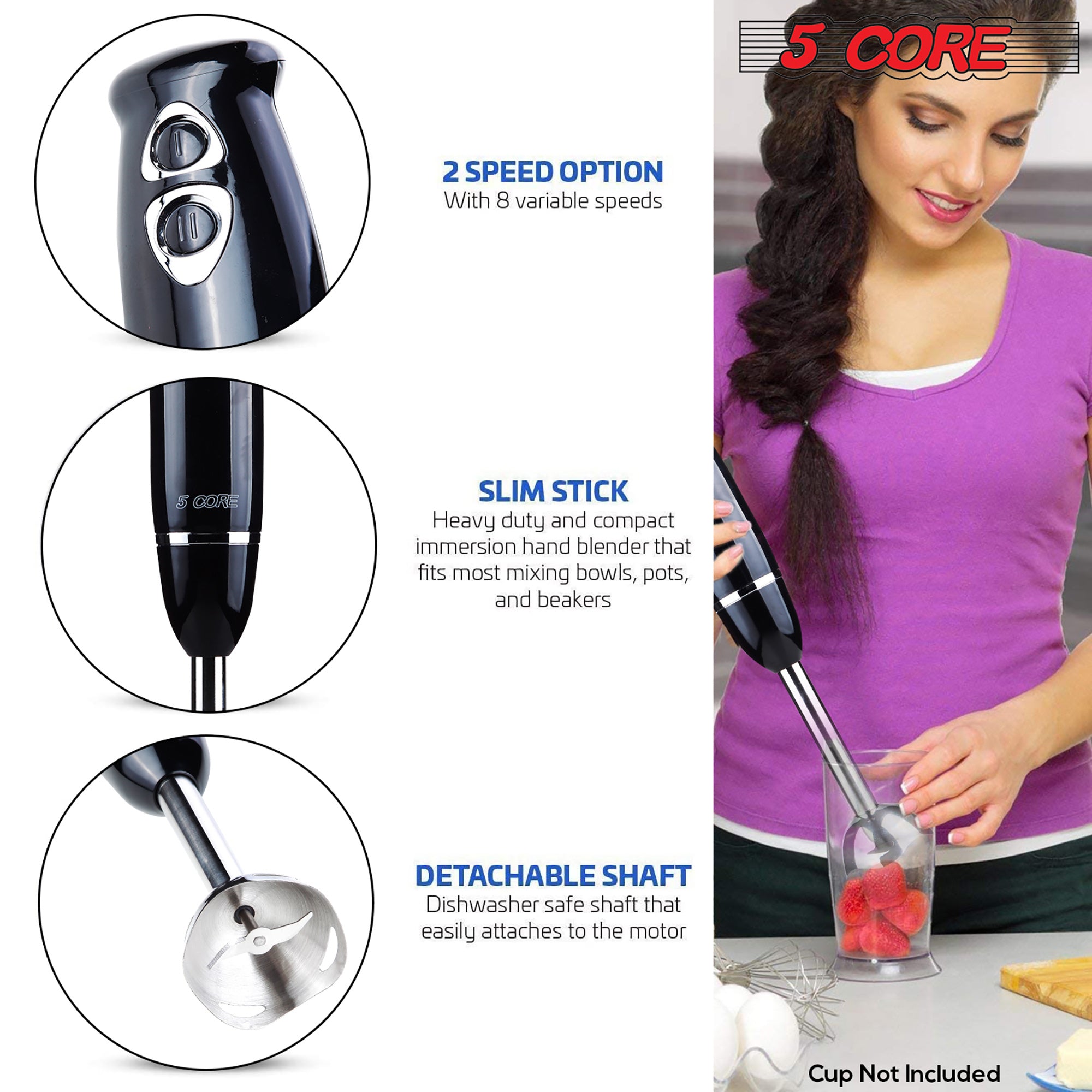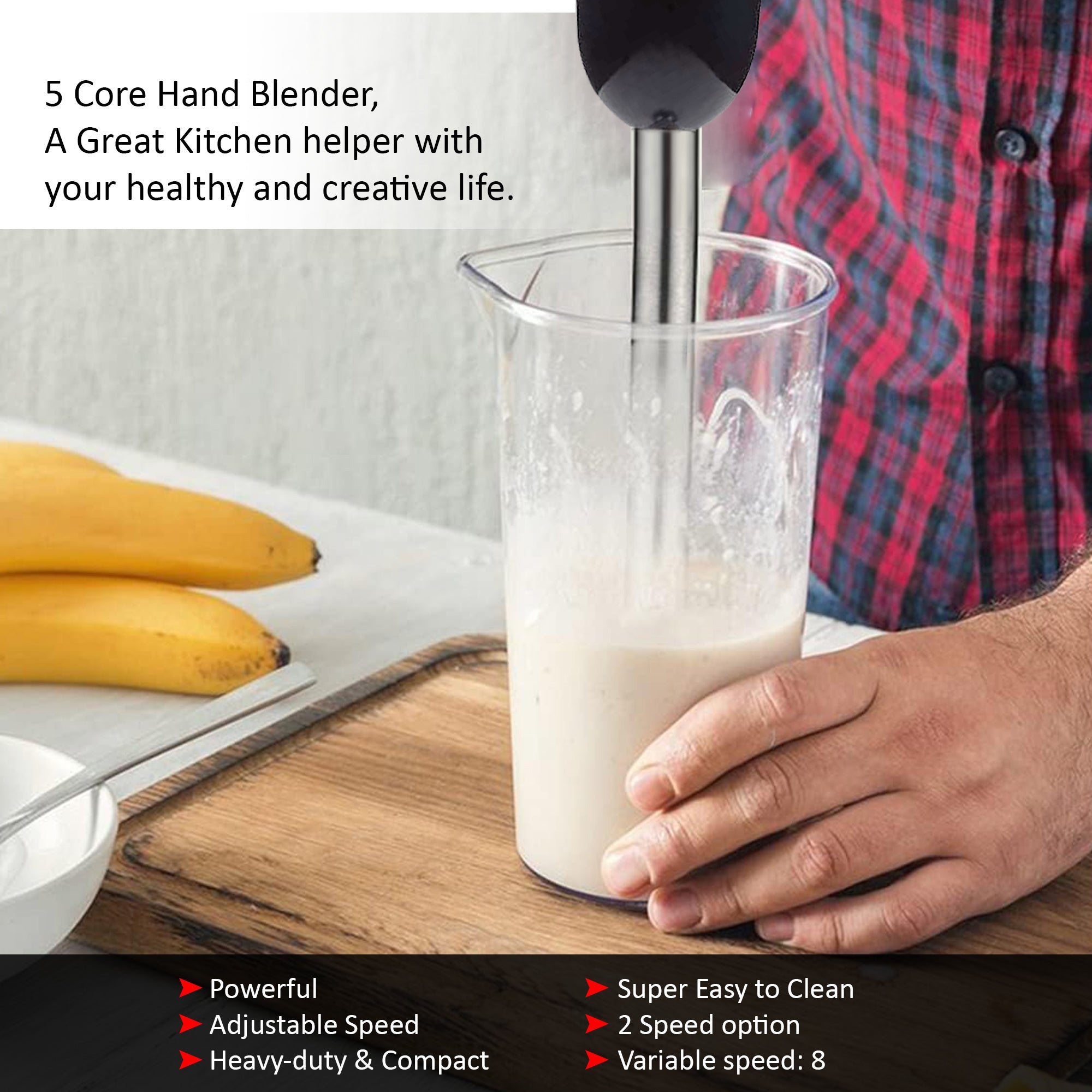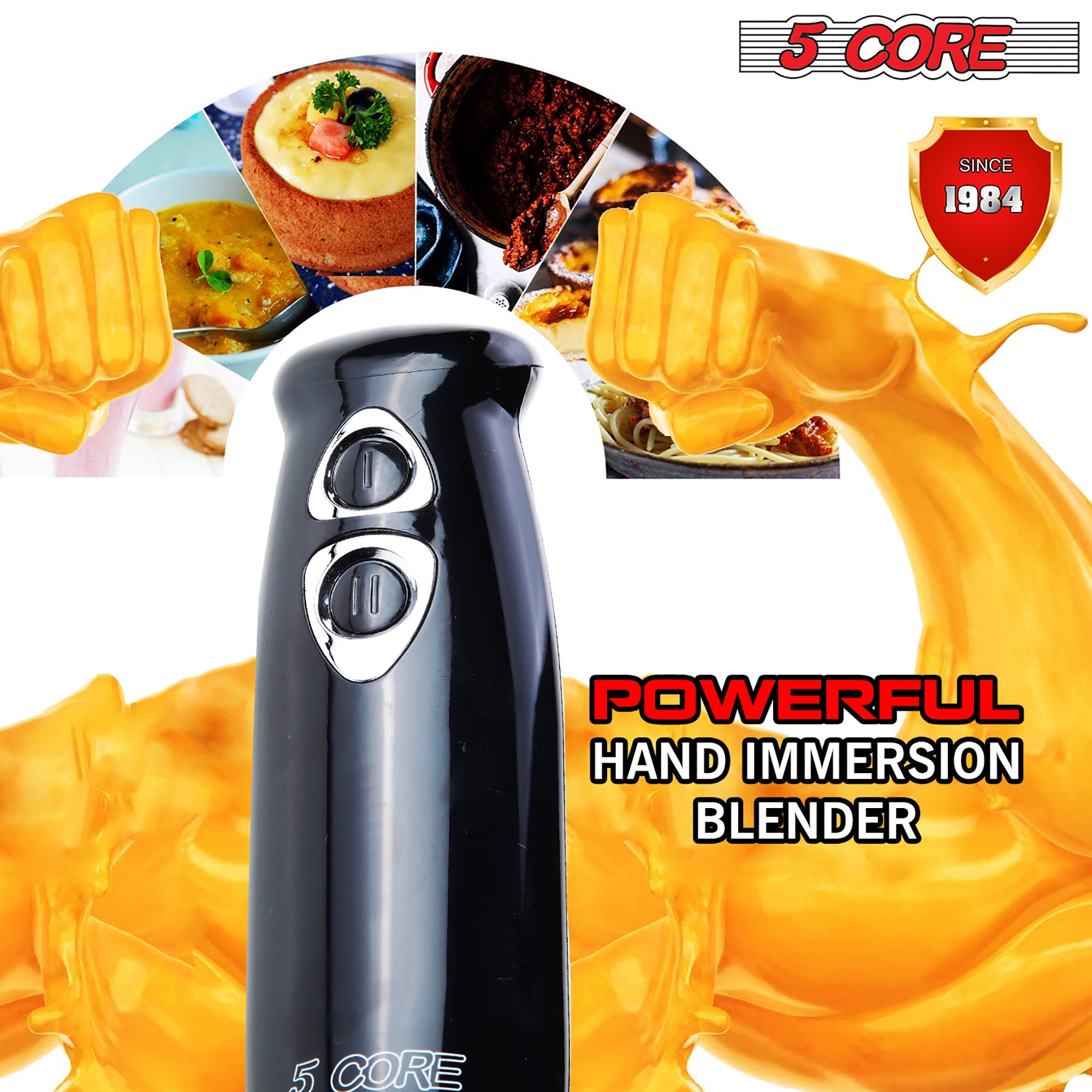 Introducing the 5 Core 8-Speed Handheld Electric Blender, your versatile kitchen companion for effortless blending tasks. With a powerful 500W motor, this immersion blender effortlessly tackles various recipes, from silky smoothies to creamy soups and pureed baby food.