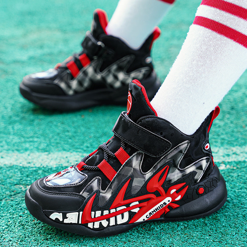 The Kids Basketball Shoes offer a blend of durability, comfort, and style for young athletes. With a non-slip sole and genuine leather construction, these sneakers provide stability and support during outdoor sports activities. Perfect for budding basketball players, these shoes prioritize safety and performance on the court.
