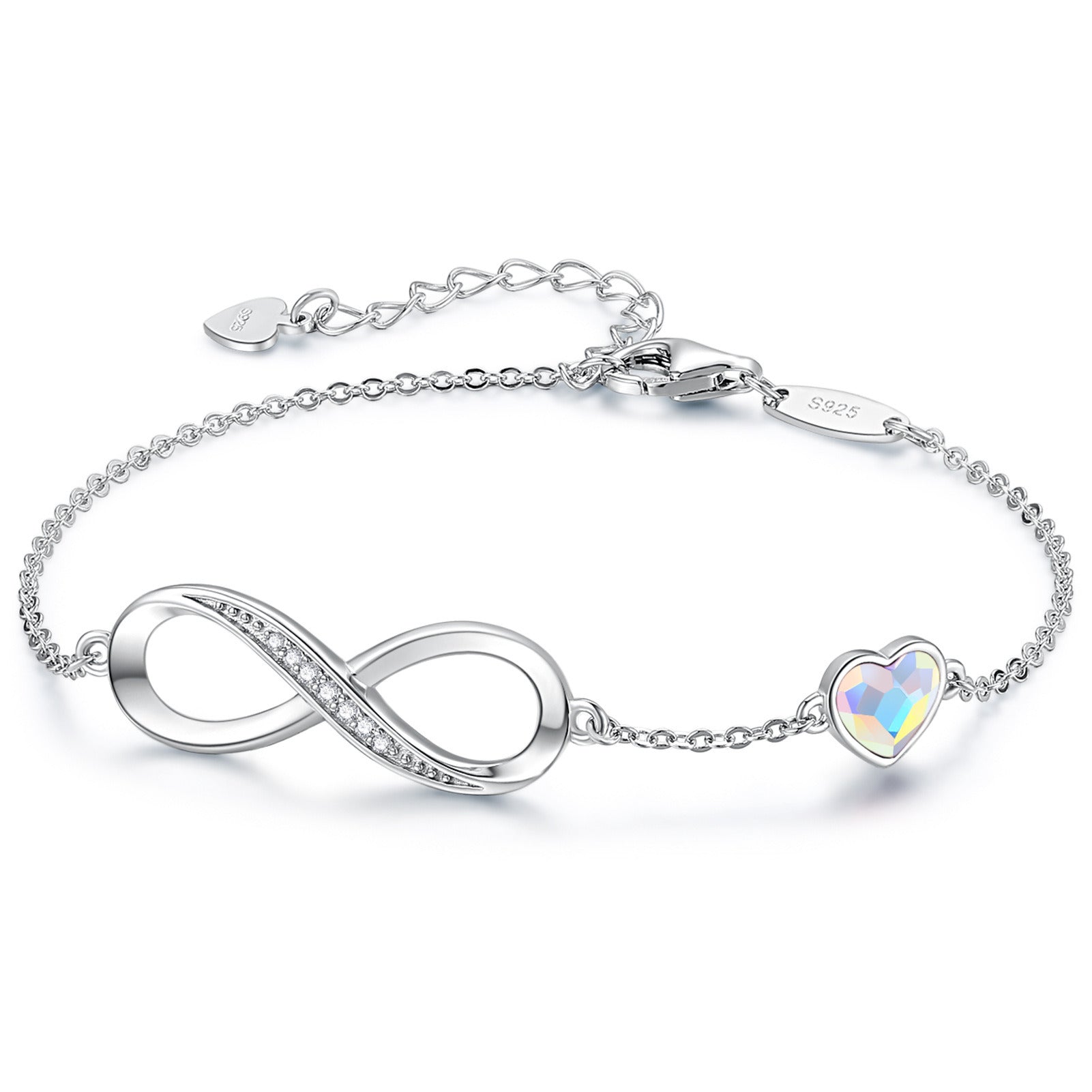 925 STERLING SILVER BRACELETS: This women’s bracelets are made of gold-plated 925 sterling silver. Fastened with a lobster clasp, this adjustable bracelet is embellished with a heart charm and an infinity symbol glittering with Austrian crystals.