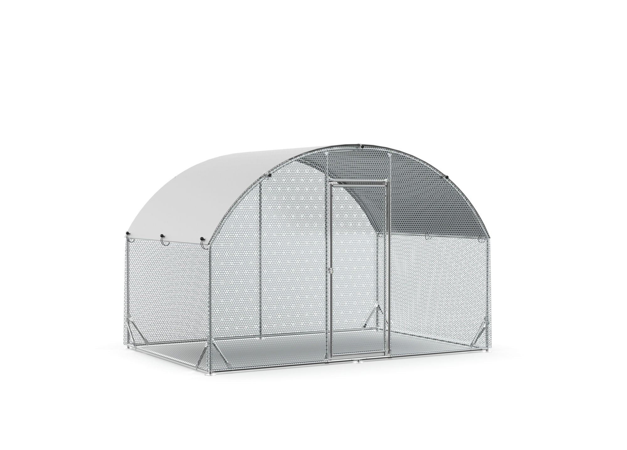 Our heavy-duty metal coop (9'W x 19'L x 6.5'H) is made of the high-quality steel frame. A large metal coop for long-term use is the point we keep in mind all the time when we produce this product, so we added additional support columns and triangular supports. The stainless steel coupled with galvanizing technology resistance of the cage.