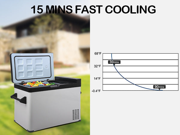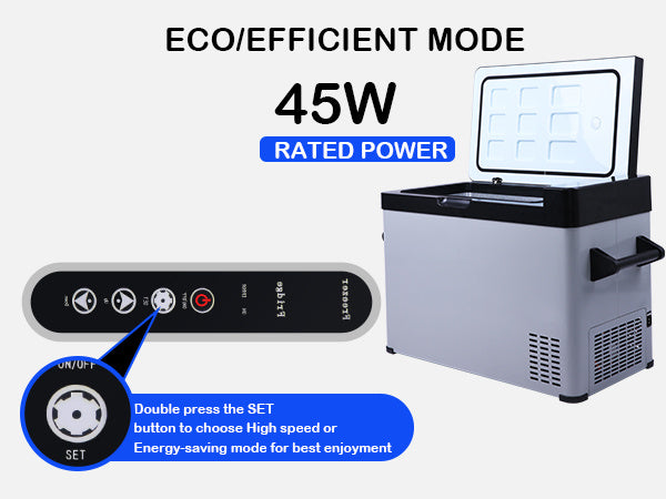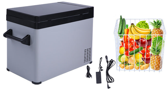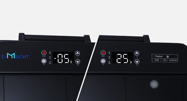 52qt Capacity & 2 Storage: Equipped with 52qt storage space, which is divided into a cold storage area and a cryogenic area, this cooler is enough to meet your daily needs. Meat, seafood, vegetables, food, ice cream, and even cosmetics, etc. It can’t be better for your home and travel. Efficient Cooling & Energy Saving: Fridge is Adopt advanced compressor cooling technology to complete rapid cooling from 90°F to 32°F in 30 minutes. And ECO mode is also set to ensure energy-saving and retention when going out.3-level Battery Protection with Low Noise: In order to ensure your safety, we are equipped with a 3-level low-voltage protection system to effectively protect the battery and refrigerator. Simultaneously noise below 45 decibels also ensures the comfort of use. Suitable for Various Occasions w/ Shockproof: Freezer measures 29" x 14" x 19.5", which makes it easily inserted into the trunk and seat. It is also perfect for parties, camping, driving, fishing, etc. The body can be tilted briefly by 30 degrees, which ensures stable working even when crossing rough roads. Easy Operation with LED Display: Designed as 4 buttons and 3 indicator lights, we ensure the perfect coordination of simplicity and operability. LED light and instruction manual let you master this skill easily. This is a durable product for all ages.