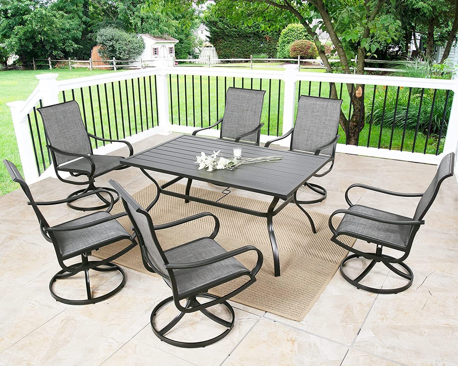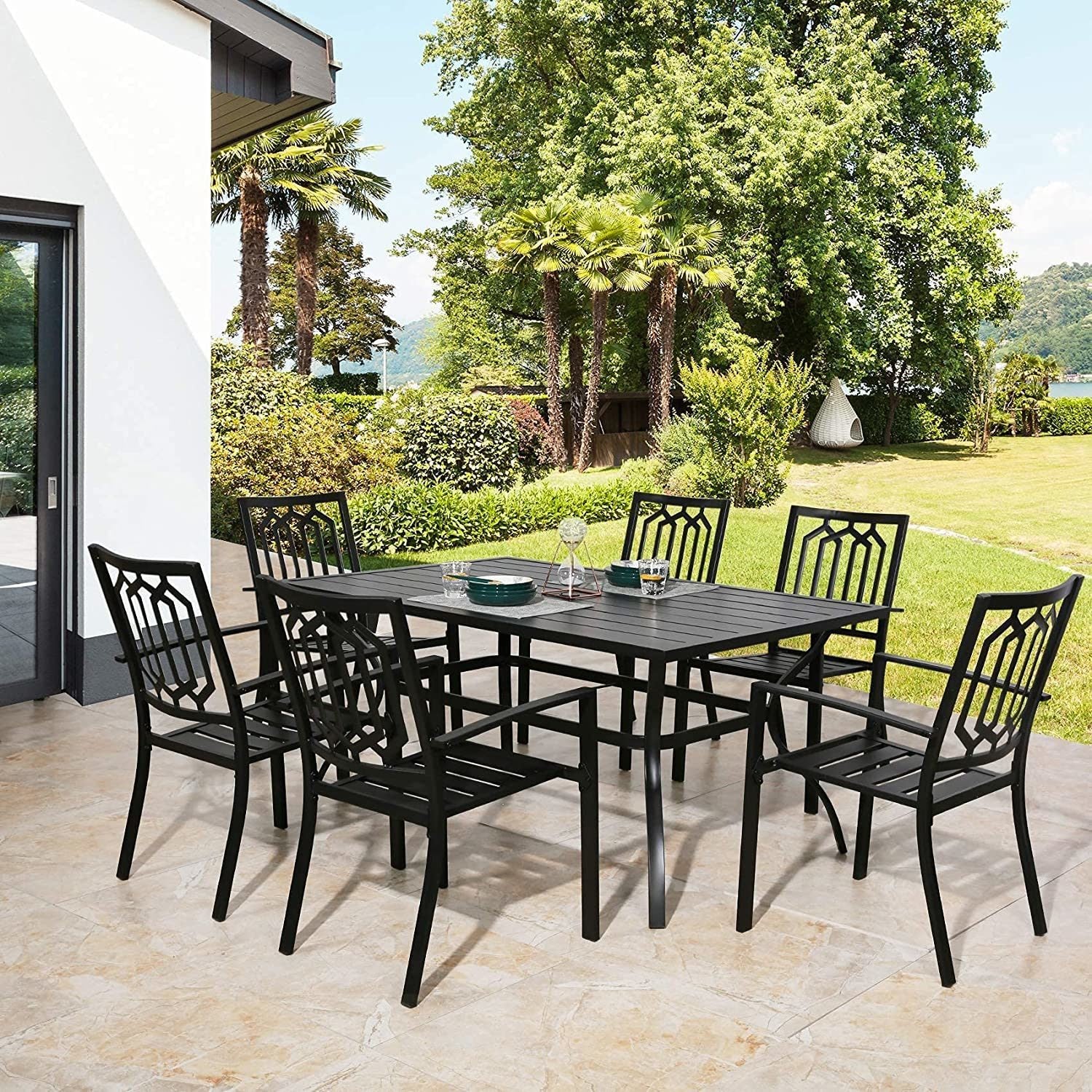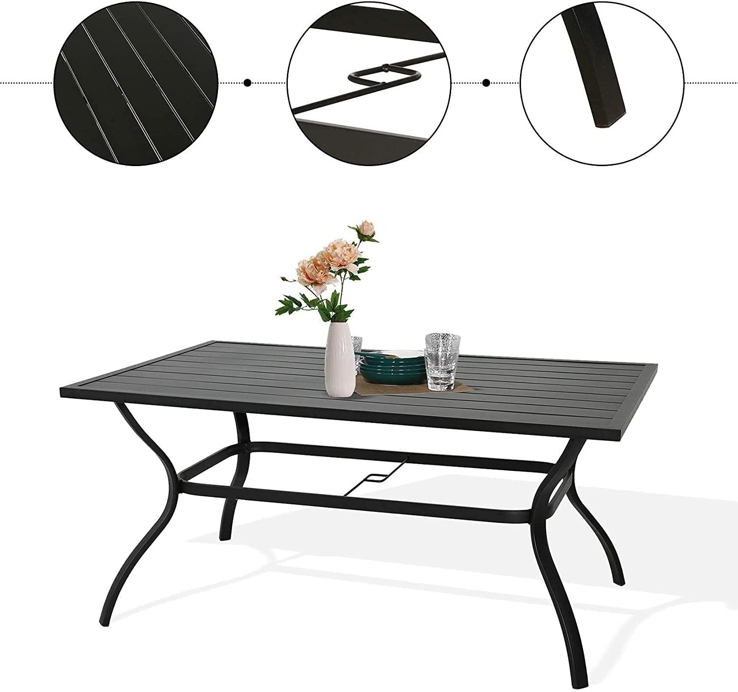 Large Dining Table: Slat steel tabletop design makes your outdoor furniture more eye-catching; The dining table is suitable for six or more person family dinner and party