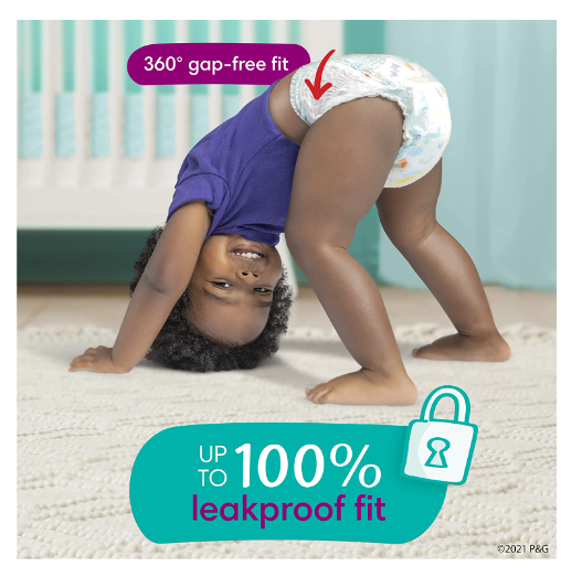 Pampers Cruisers 360 diapers are our best fit and protection for your active baby. Unlike ordinary disposable diapers that gap in the back, Pampers Cruisers 360 diapers stretch comfortably around your baby's waist and adapt to their every move for a flexible, gap-free fit that is up to 100% leakproof. Plus, they feature our Dual Leak-Guard Barriers that gently seal around your baby's legs, where leaks happen most.And forget fiddling with ordinary diaper tapes! Pampers Cruisers 360 has a 360-degree stretchy waistband designed to quickly and easily pull up onto your wiggly baby. And when a diaper change is complete, we’ve made disposal simple. All you need to do is RIP the Easy-Tear Sides and ROLL the diaper, then secure it with the disposal tape that comes attached to the back. Simple as that.Also, to keep your baby's delicate skin healthy, Pampers Cruisers 360 delivers breathable dryness, pulling out wetness and locking it away from skin using our exclusive LockAway Channels. Plus, Cruisers 360 is hypoallergenic—completely free of elemental chlorine bleaching, parabens and latex.* For protection that will keep your little one happy and comfy on-the-go, trust Pampers, the #1 pediatrician recommended brand.*Natural rubber