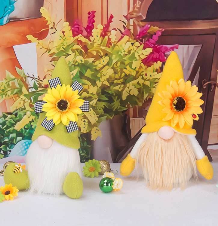 Spring Gnomes Easter Decorations; Handmade Summer Sunflower Gnomes Faceless Plush Doll