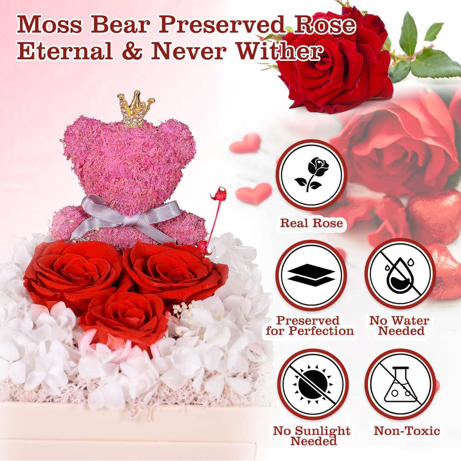Long-Lasting Beauty, Minimal Effort: Valentines gifts for Women ,Enjoy the longevity of this real rose, requiring no special care. Store it in a cool place, and it will retain its beauty for 3-5 years.