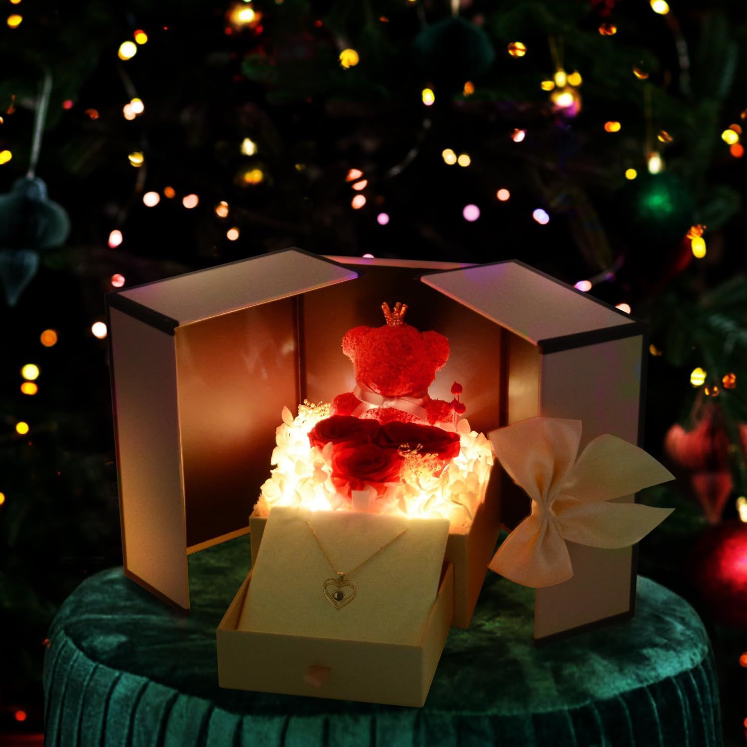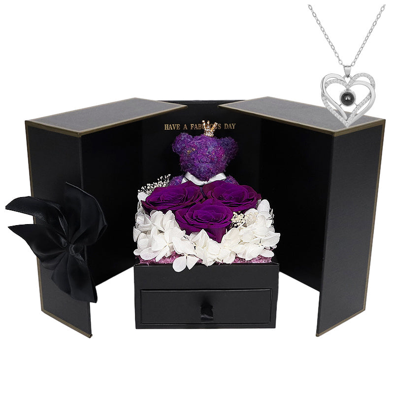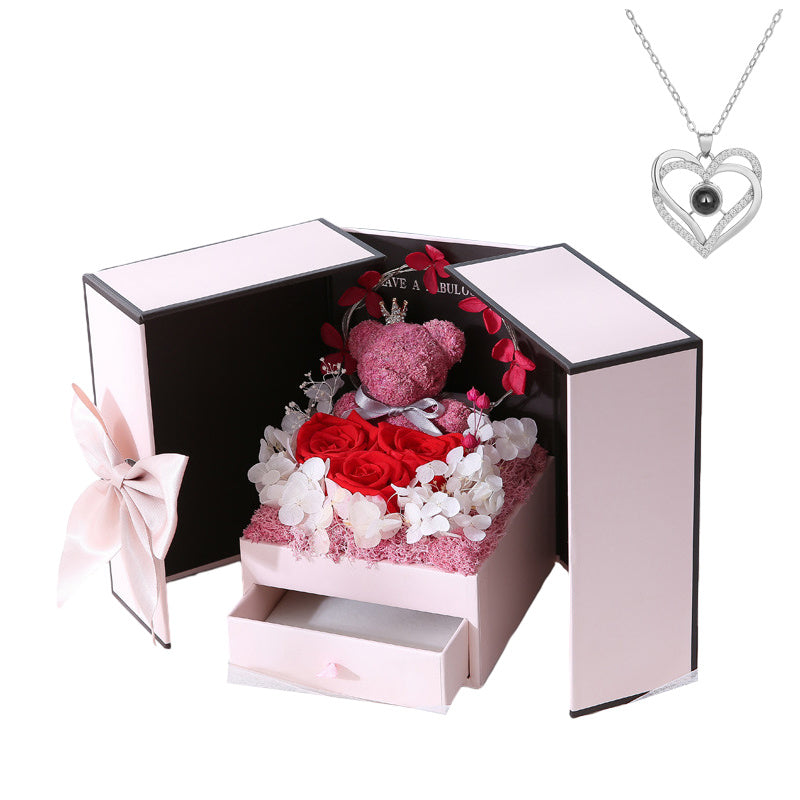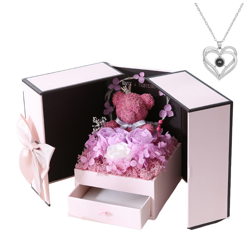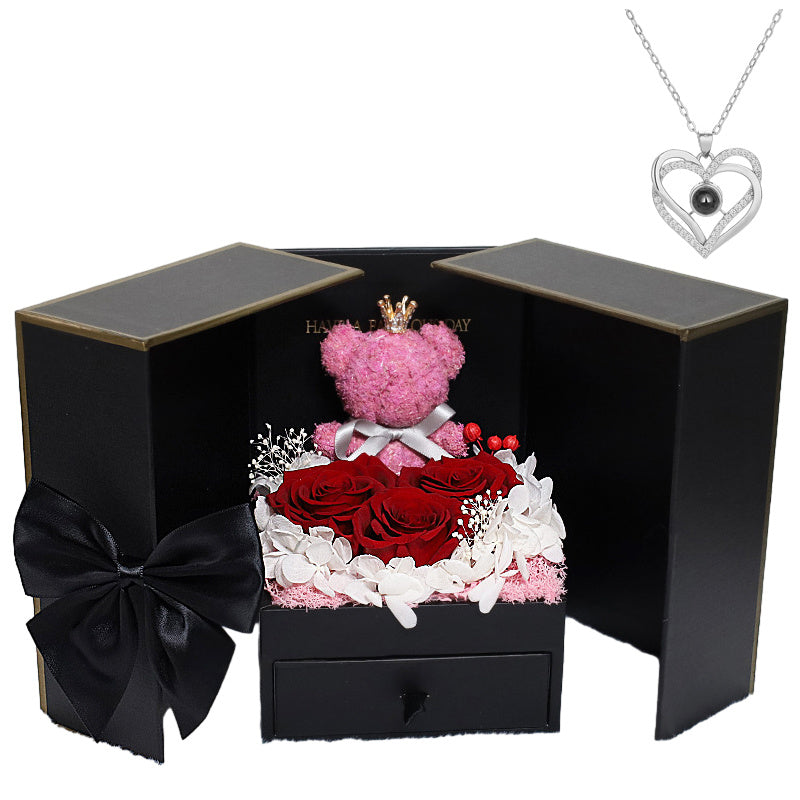 Valentines Rose Gift for Her: Make this Christmas unforgettable with the most romantic surprises for the special women in your life-mom, wife, girlfriend, mother, daughter, and grandma. Ideal for Valentine's Day, New Year's Day, or any other holiday occasion. Beautiful Gift box: Valentine's Day gifts for Women ,The rose and cute moss bear and pendent all inside a stylish designed jewelry box.