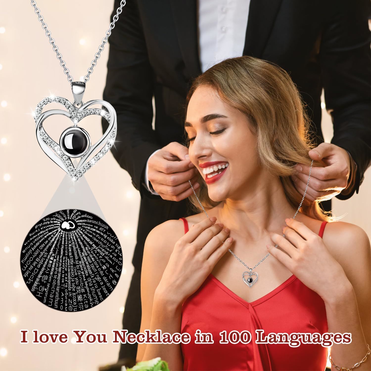 100 language necklace: Unveil the heartwarming surprise of a 100 Languages "I LOVE YOU" necklace concealed in the bottom of the box.
