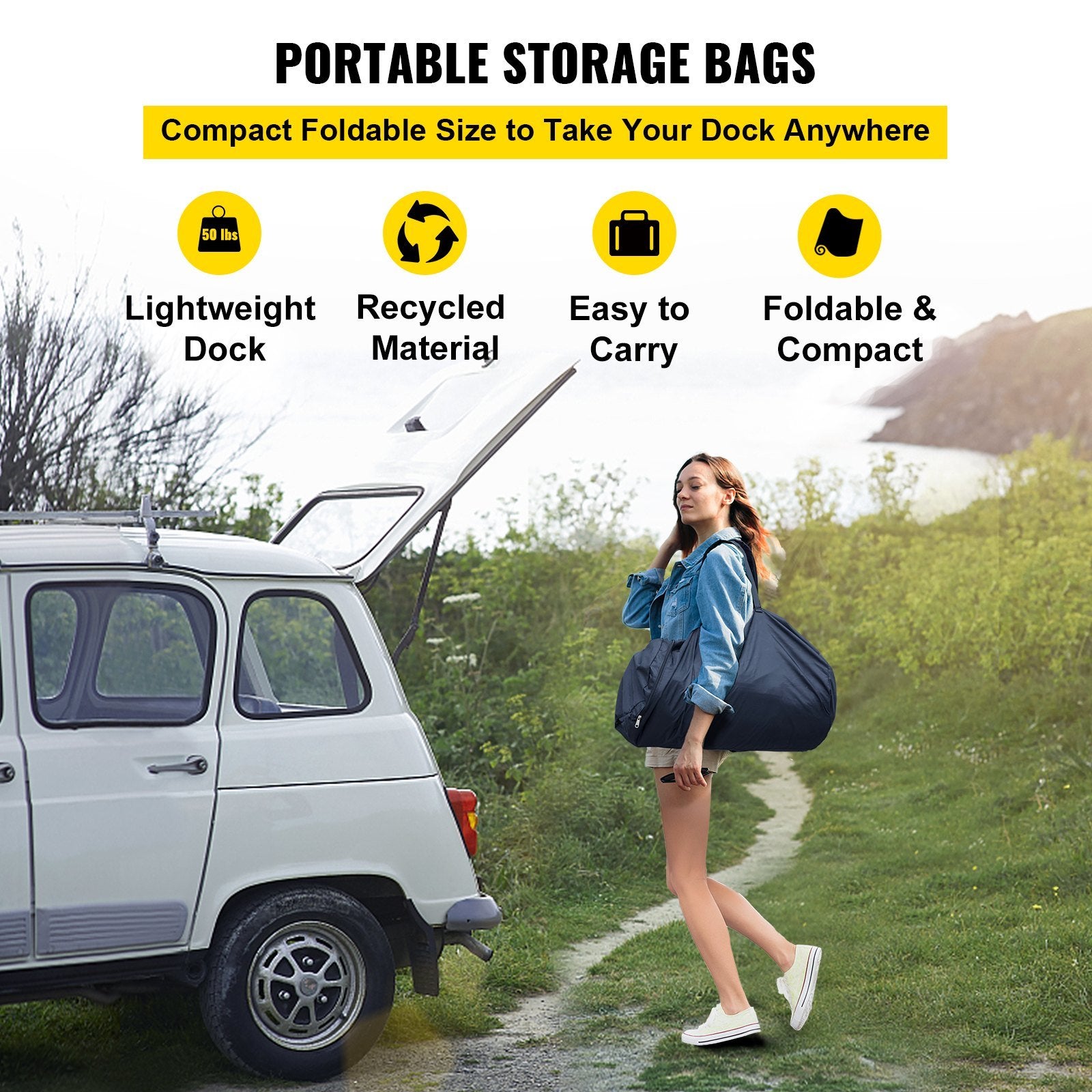 [QUICKLY INFLATED & DEFLATED]- We provide both an electric air pump and a double-action hand pump for you to fast inflate and deflate the dock, bringing convenience for use. The stainless steel D-rings are designed for quick and easy tethering to any dock, boat, or anchor.